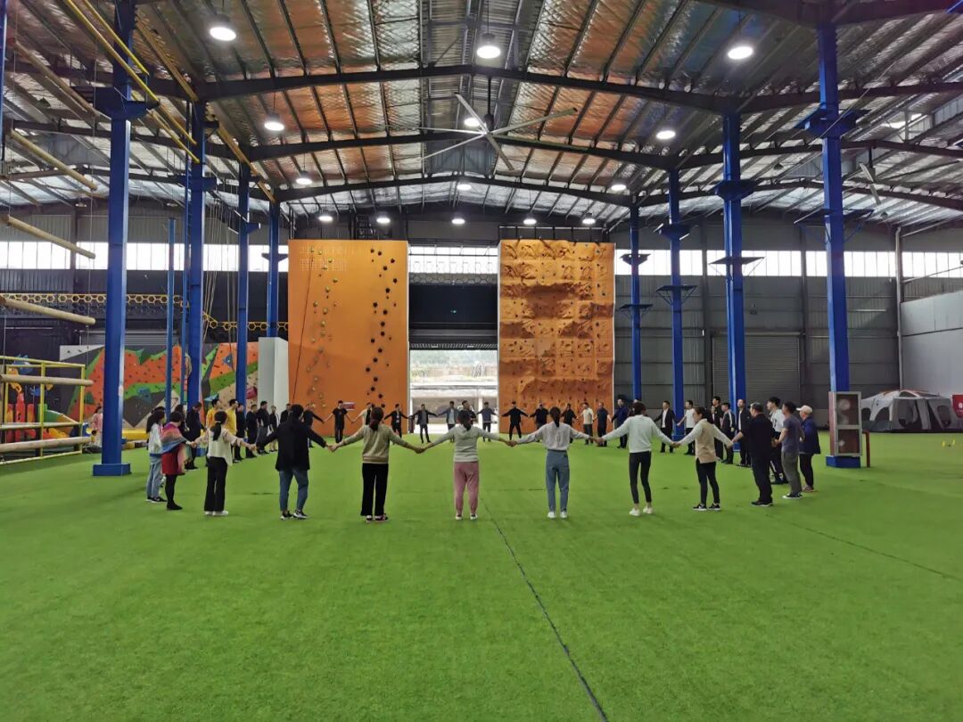 相聚即(ji)是美好,在一(yi)起即(ji)是團隊,如此幸(xing)運(yun)遇(yu)見彼此,感謝信任(ren),感恩相遇(yu)。 在雙(shuang)節(jie)來臨之前,圣力控(kong)股舉行(xing)了(le)一場別(bie)開生面的(de)團建活動(dong)。此次活動(dong)選址桐廬霍(huo)普曼(man)體旅小鎮,伴著漸近的(de)秋(qiu)日氣息,致趣(qu)人脫開繁忙(mang)的(de)工作,盡情享受(shou)大自(zi)然的(de)恩賜,在歡聲笑(xiao)語中放(fang)松自(zi)我。 畢業墻(qiang):全(quan)隊(dui)所(suo)有成員(yuan)在規定的時(shi)間內(nei)翻越(yue)一(yi)面高4.2米(mi)的光滑墻(qiang)面,在此過程中,不(bu)能借助任(ren)(ren)何外界的工(gong)具,包括:衣(yi)服(fu)、皮帶、繩子等。所(suo)能用的資源只有每個人的身體(ti)。圣力憑借著團結的力量(liang)超(chao)時(shi)完成了任(ren)(ren)務。 中午,緊(jin)張闖(chuang)關之后大家前往燒烤(kao)基地,秋日最迷(mi)人的煙火氣,都藏在了(le)熙熙攘攘的燒烤(kao)棚里。 驚險(xian)刺(ci)激是攀巖(yan)運動最(zui)根本的(de)(de)特點,挑(tiao)戰自(zi)然、挑(tiao)戰自(zi)我的(de)(de)欲望,追求極限(xian)和冒險(xian)是時下(xia)眾(zhong)多(duo)年輕人(ren)運動的(de)(de)標簽(qian)。在圣力就有(you)這(zhe)么一群(qun)挑(tiao)戰極限(xian)、不畏恐懼的(de)(de)勇士(shi),登上了頂峰。